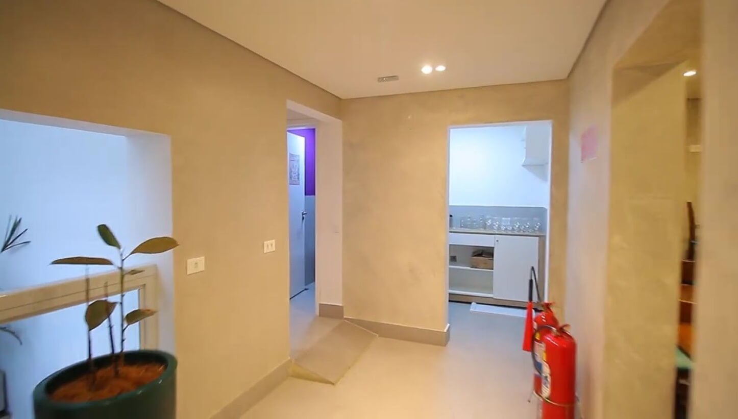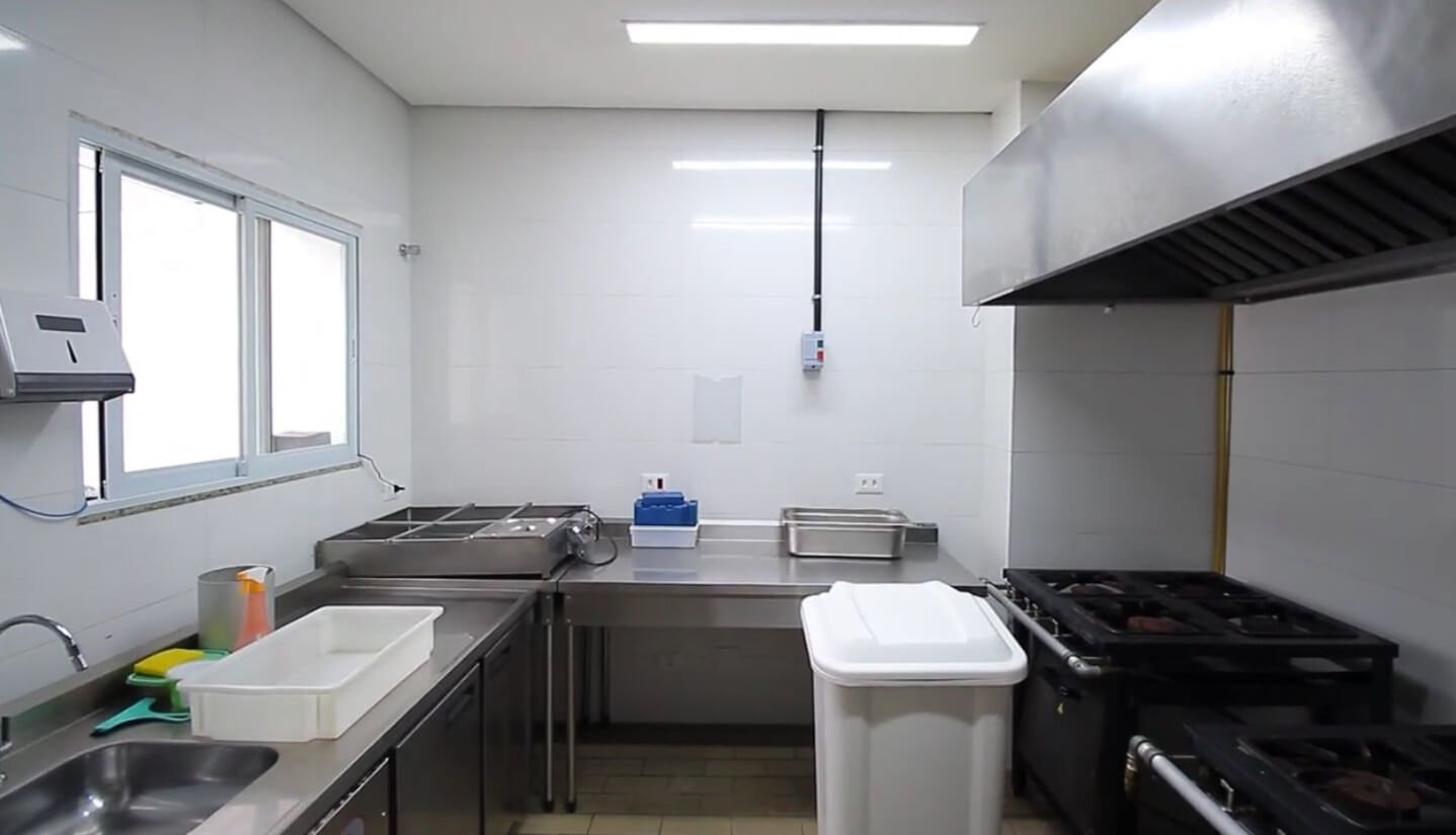 Já no terceiro andar, temos a área técnica, três salas( escrutório, vestiário, estoque), banheiro com ducha e uma cozinha industrial.