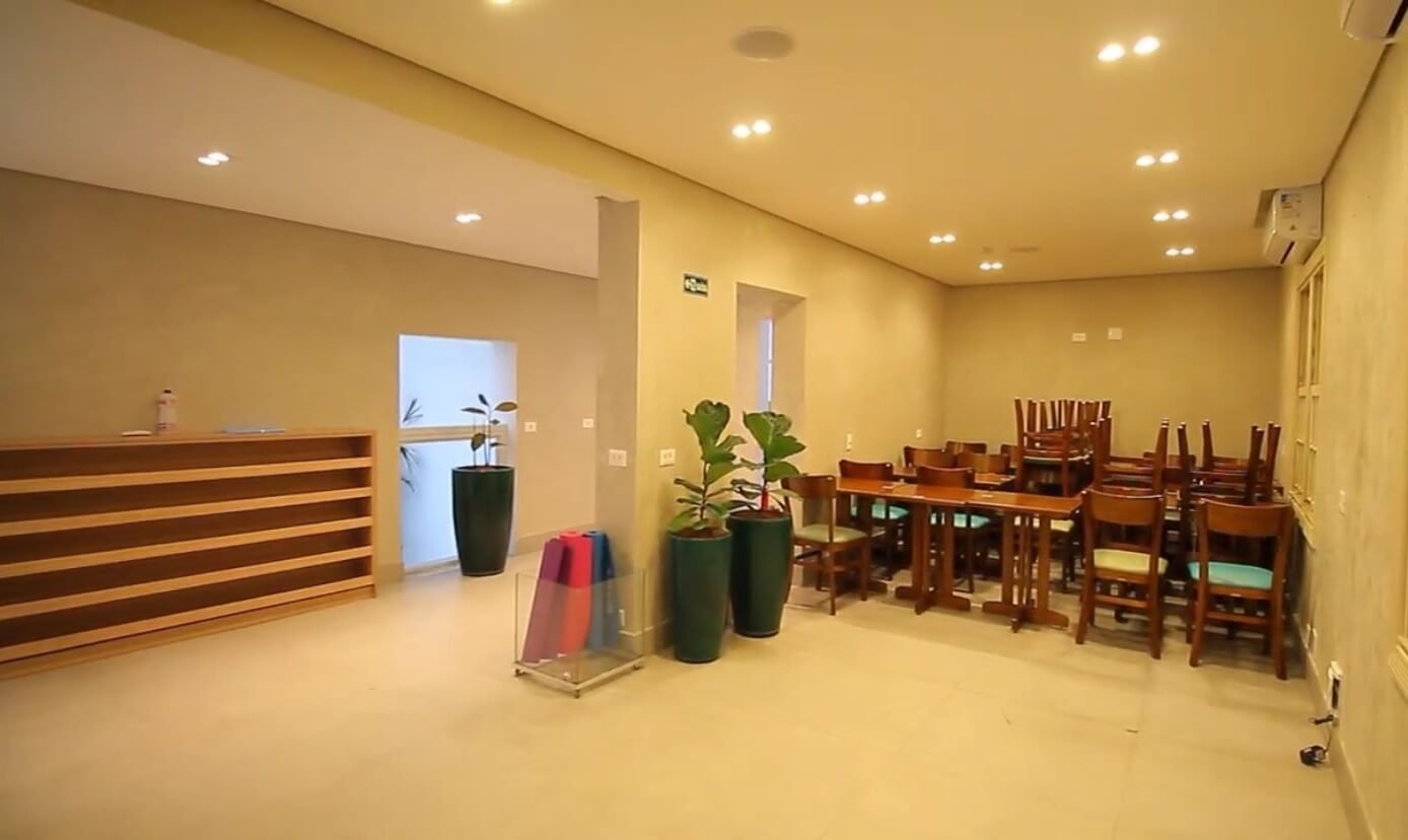 No térreo, temos um salão amplo, cozinha de apoio e banheiro com acessibilidade.