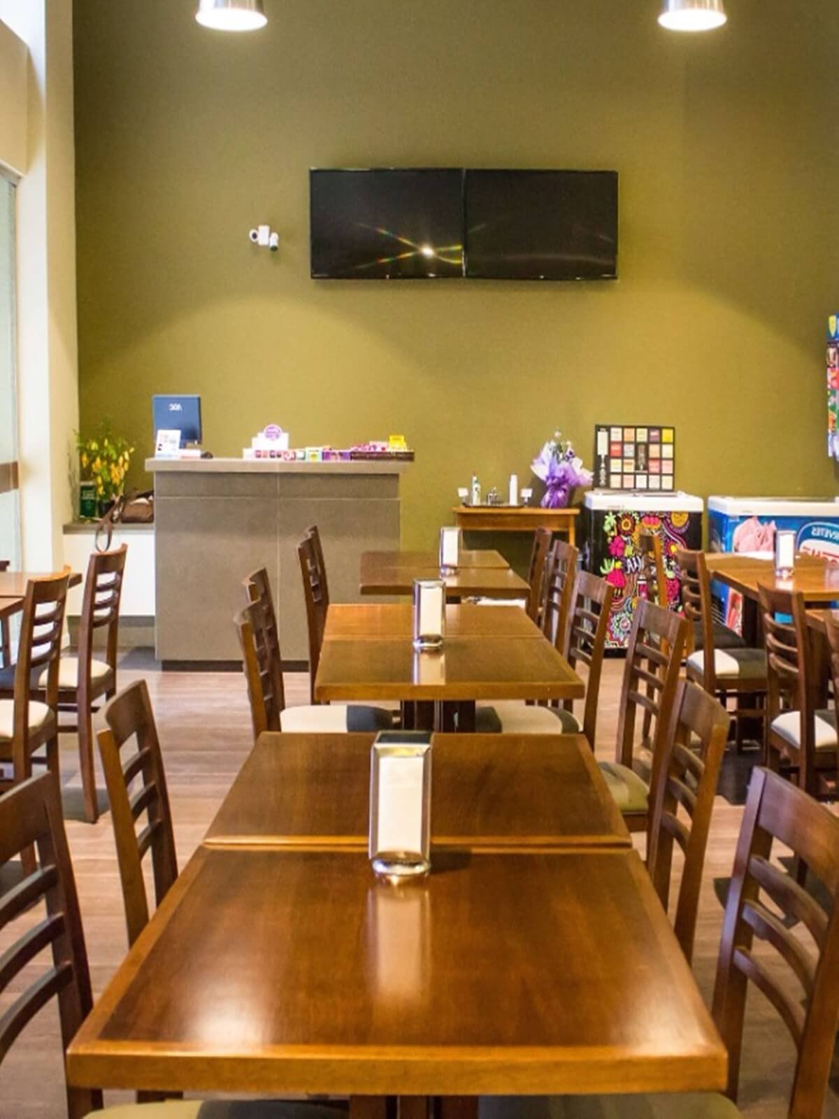 O mix de produtos é composto por comida caseira, com sistema de buffet por peso no restaurante, e salgados, bolos, doces, lanches, sucos, bebidas não alcoólicas, café e seus derivados na cafeteria.